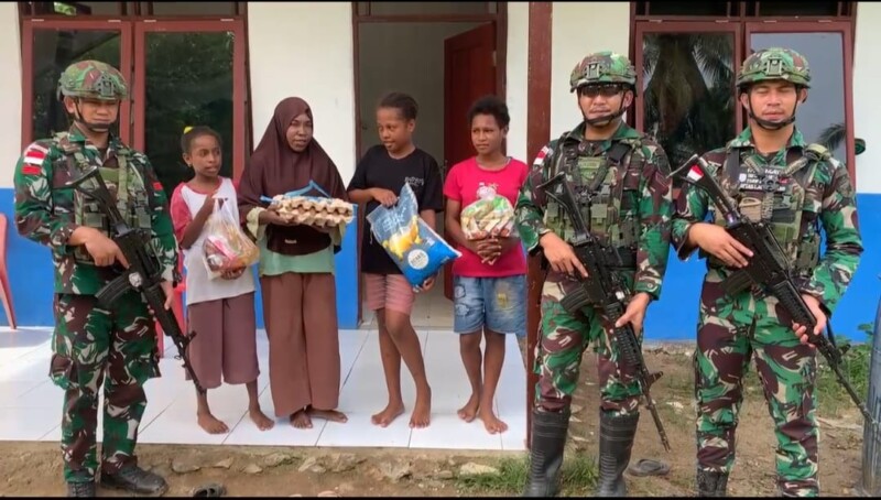 Sementara itu, Letda Inf Dimas Bayu selaku Komandan Pos Teluk Arguni mengatakan bahwa kegiatan pemberian bantuan berupa sembako merupakan wujud perhatian personel Satgas.