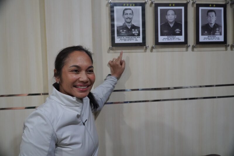 Dengan penuh kebanggaan, Ny. Uli berpose di samping foto tersebut, mengabadikan momen yang membawa ingatannya kembali ke masa lalu yaitu saat sang ayah masih bertugas dan meniti karier di tubuh TNI AD.