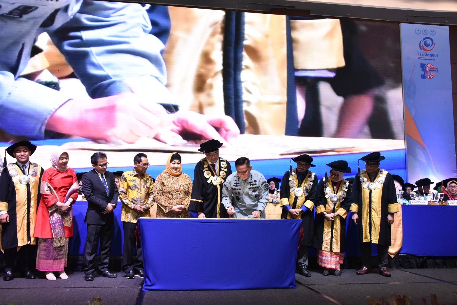 JAKARTA – Kepala Bakamla RI Laksdya TNI Dr. Irvansyah, S.H., M.Tr.Opsla., berikan Pidato Motivasi bertemakan “Membangun Generasi Unggul yang Berkarakter dan Berdaya Saing World Class University” di hadapan 1.015 orang Wisudawan/i Universitas Esa Unggul, Jakarta Barat, pada Rabu (4/10/2023).