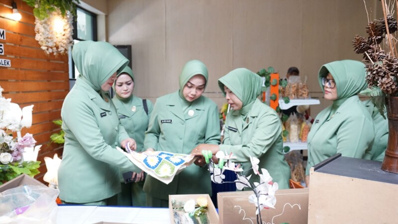 Didampingi Ketua Persit KCK Koorcab Rem 081, Ny. Dhina Rama Pratama, ia meninjau berbagai stand yang menampilkan hasil-hasil kerajinan tangan dan produk olahan makanan serta minuman.