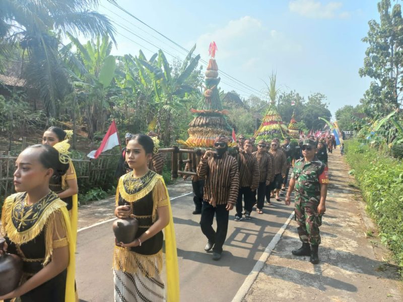 Tak hanya bendera raksasa, kirab juga menghadirkan gunungan hasil bumi yang dipikul warga sebagai simbol kemakmuran, serta atraksi budaya dari anak-anak hingga generasi muda dengan beragam kreasi.