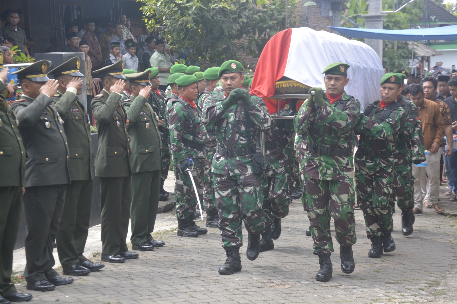 “Pemakaman militer merupakan hak dan penghormatan terakhir yang diperuntukkan bagi setiap prajurit TNI yang meninggal dunia sebagai penghargaan dari negara atas jasa-jasa serta darma baktinya kepada Negara Kesatuan Republik Indonesia,” ucap Kasdim