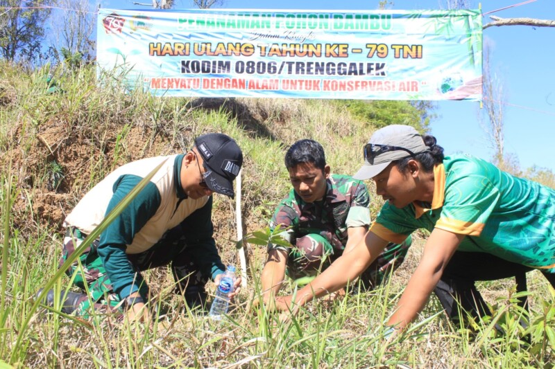 Trenggalek, – Dalam rangka peringatan Hari Ulang Tahun (HUT) ke-79 Tentara Nasional Indonesia (TNI), Kodim 0806/Trenggalek mengambil langkah konkret untuk melestarikan lingkungan dengan menggelar Penanaman Pohon Bambu bertema “Menyatu Dengan Alam Untuk Konservasi Air” di kawasan Arboretrum Dilem Wilis, Desa Dompyong, Kecamatan Bendungan, pada Kamis (19/9/2024).