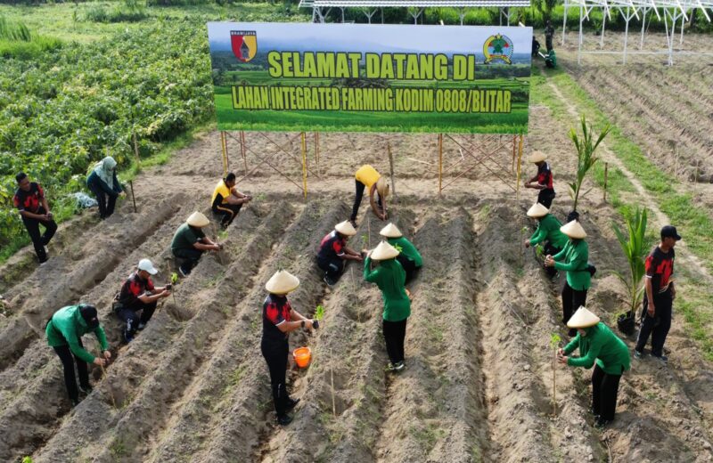 Sebagai bentuk simbolis, penanaman pohon dilakukan langsung oleh Dandim 0808/Blitar, diikuti seluruh peserta. Acara ditutup dengan sesi foto bersama, momen yang menegaskan semangat gotong royong dan komitmen bersama membangun ketahanan pangan berbasis potensi lokal.