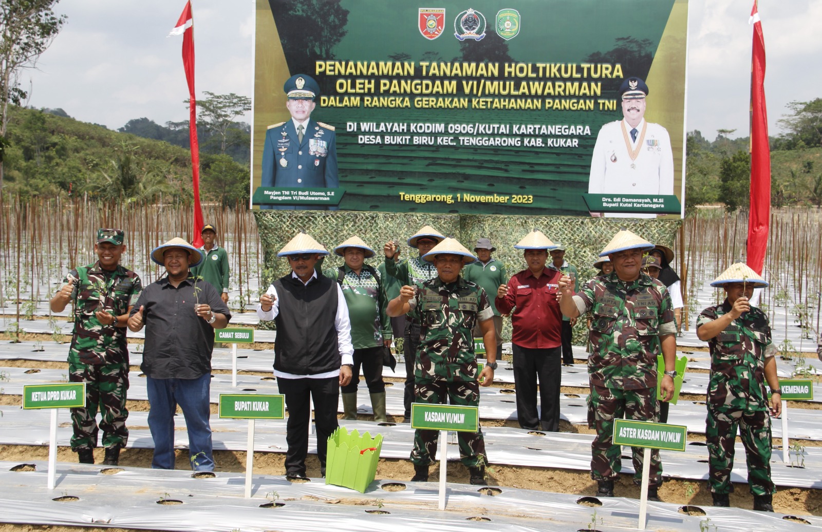 KUKAR – Mewakili Pangdam VI/Mulawarman (Mlw) Kepala Staf Kodam VI/Mlw Brigjen TNI Susilo secara langsung tutup Karya Bakti Kodim 0906/Kutai Kartanegara (Kkr) dan Gerakan Nasional Ketahanan Pangan tahun 2023 dalam rangka HUT TNI ke 78 yang bertemakan ” Ketahanan Pangan Untuk Indonesia Maju” bertempat di Kelurahan Bukit Biru, Kecamatan Tenggarong, Kabupaten Kutai Kartanegara (Kukar), pada Rabu (1/11/2023).