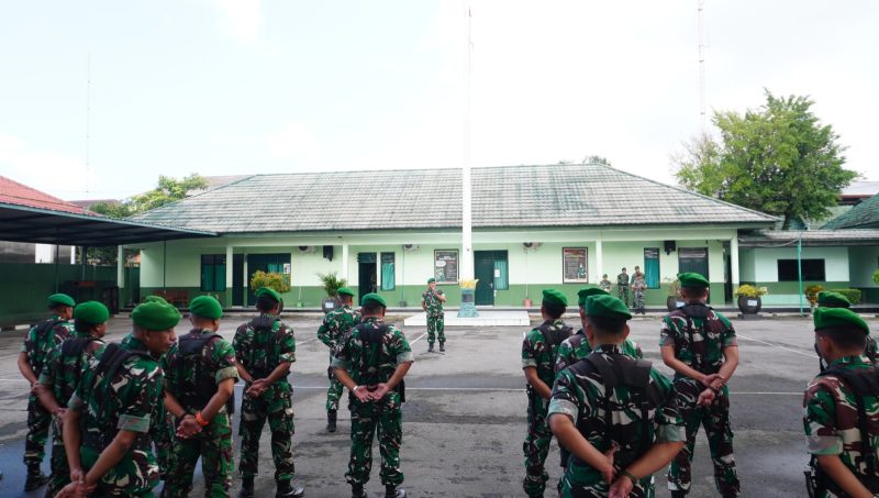 Apel pelepasan digelar di Makodim 0724/Boyolali, Kecamatan Mojosongo, Kabupaten Boyolali, Selasa (17/3/2026), dipimpin Kepala Staf Kodim Mayor Inf Sri Suraya mewakili Komandan Kodim Letkol Inf Dhanu Anggoro Asmoro.