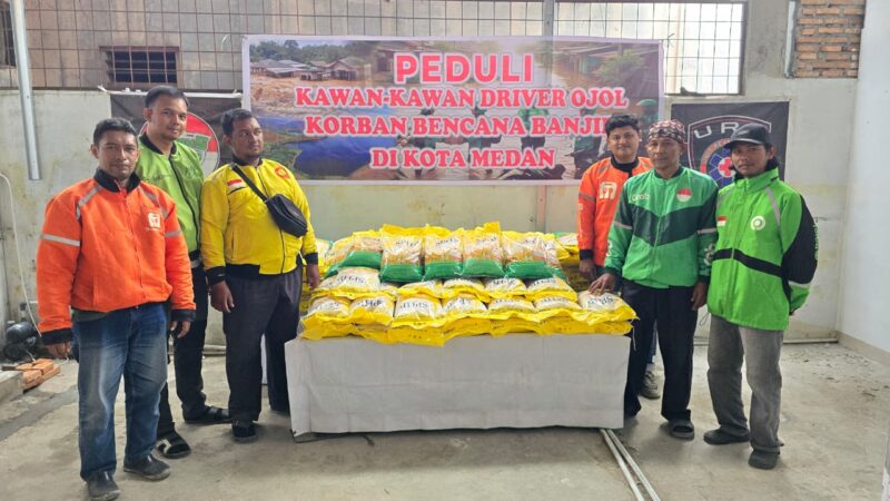 Medan, – Komunitas pengemudi ojek daring di Sumatera Utara yang tergabung dalam Gabungan Ojek Roda Dua Medan Sekitarnya (Godams) menyalurkan bantuan bagi korban banjir di sejumlah wilayah. Bantuan berupa beras tersebut diprioritaskan untuk pengemudi ojek daring yang terdampak bencana.