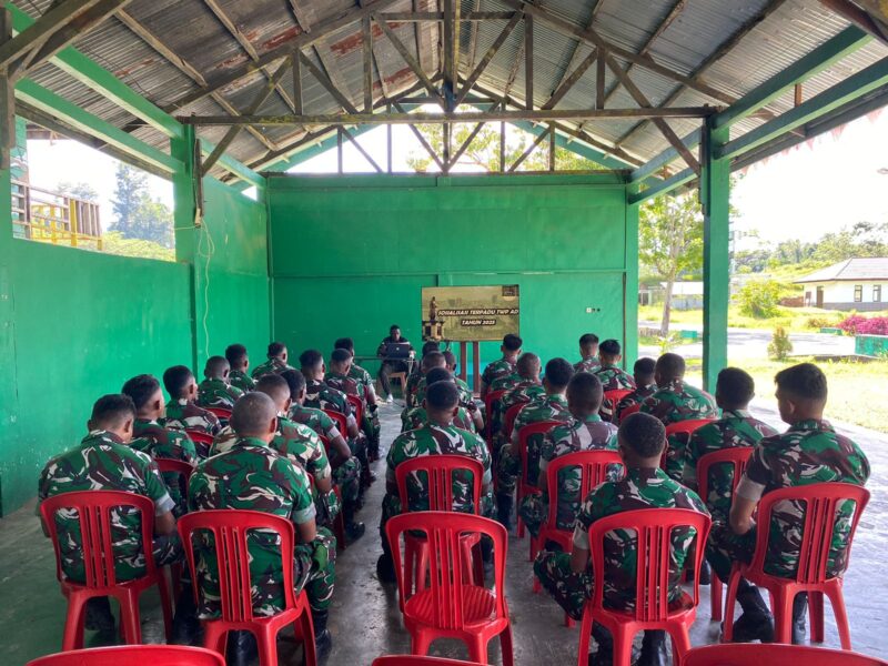 Papua Barat Daya, – Korum Yonif 763/SBA melaksanakan kegiatan Sosialisasi Terpadu Tabungan Wajib Perumahan (TWP) AD yang digelar secara tatap muka dan video conference (vicon). Kegiatan ini berlangsung di Aula Yonif 763/SBA dan diikuti oleh seluruh prajurit serta anggota Persit yang masuk dalam Korum.