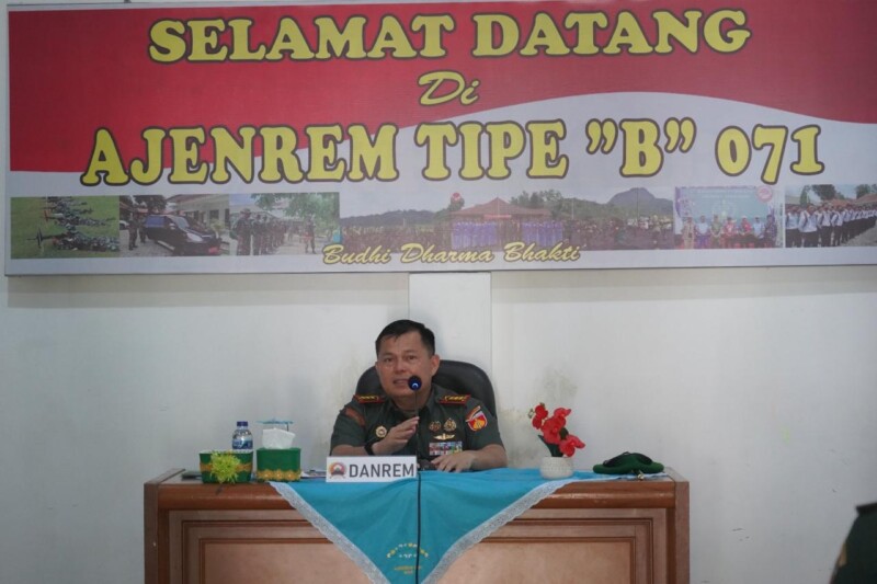 Danrem 071/Wijayakusuma datang dengan didampingi Kasiintel, Kasiter dan Pasiopsrem 071/Wijayakusuma dalam arahannya di depan prajurit dan PNS Ajenrem, Denhubrem dan Minvetcad, menyampaikan, kunjungannya di satuan itu untuk bersilaturahmi agar lebih dekat dengan segenap prajurit dan PNS satuan pendamping itu.