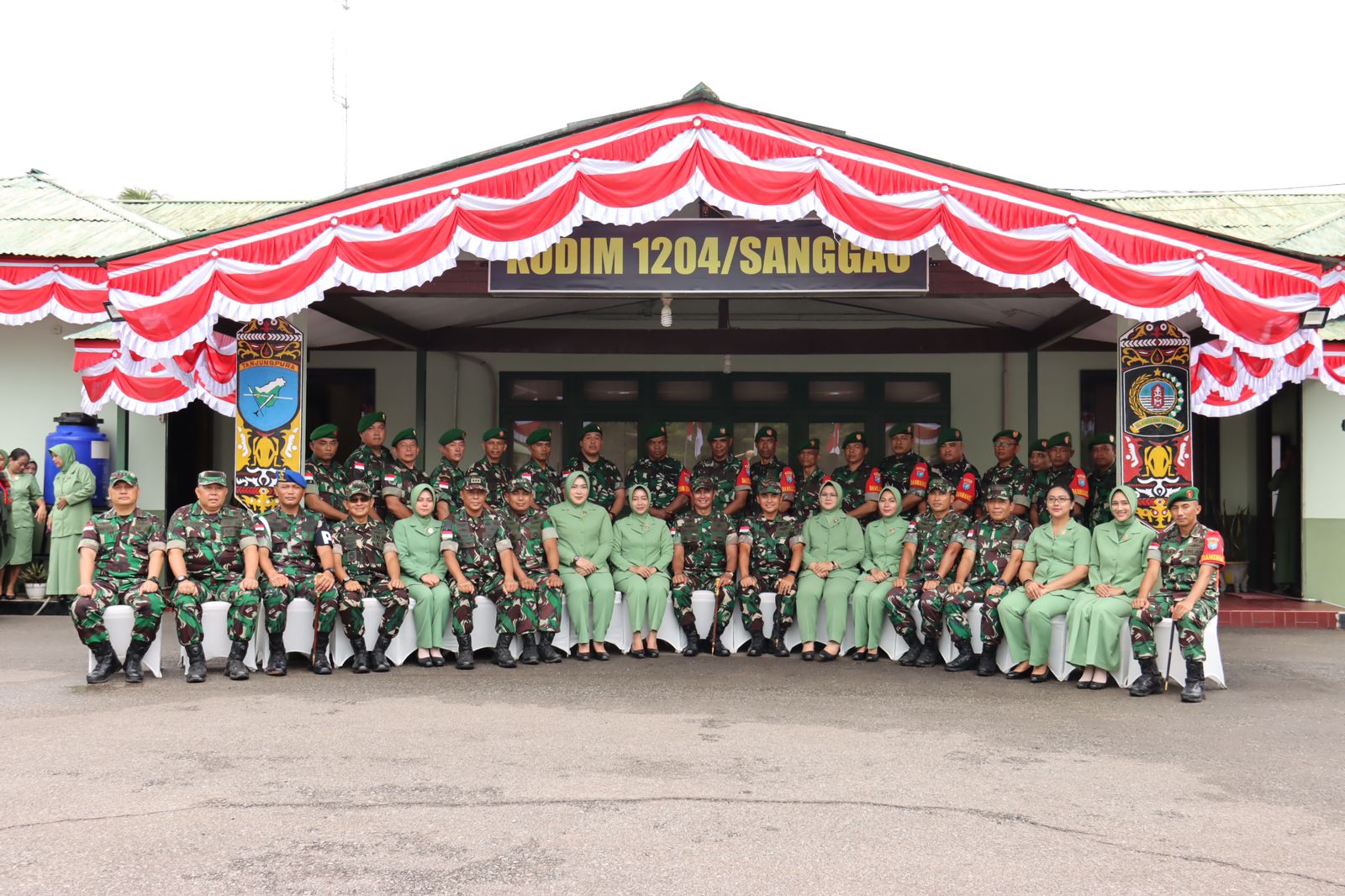 Setibanya di Makodim, Pangdam XII/Tpr dan rombongan disambut oleh Dandim 1204/Sgu, Letkol Inf Putra Andika Trihatmoko dan Ketua Persit KCK Cabang XLVIII Ny Dilla Sabrina Trihatmoko beserta para Perwira Staf dan Danramil jajaran.