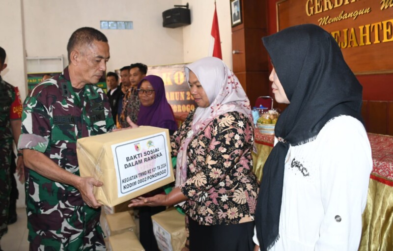 Ponorogo, – Kasiter Rem 081/DSJ, Letkol Inf Subagya memberikan bansos kepada masyarakat kurang mampu di Desa Selur yang menjadi lokasi diselenggarakannya TMMD ke-121 Kodim 0802/Ponorogo.