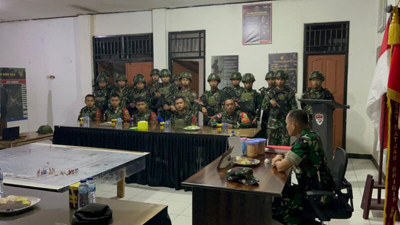 Didampingi Kasi Intel Korem 181/PVT, Brigjen Slamet Riadi memberikan pengarahan kepada seluruh prajurit Satgas agar senantiasa menjaga disiplin, semangat juang, dan soliditas satuan. Ia menekankan pentingnya kehadiran TNI di tengah masyarakat perbatasan sebagai representasi negara yang hadir melindungi dan melayani rakyatnya.