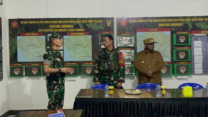 Selain memberikan arahan, Danrem juga meninjau sejumlah fasilitas pos serta berdialog dengan para prajurit untuk mendengar langsung kondisi dan kebutuhan mereka di lapangan. Kunjungan ini disambut hangat oleh Dansatgas Pamtas Kewilayahan RI–PNG Yonif 763/SBA Letkol Inf Eko Novandy Saputro, S.I.P., beserta seluruh anggota Pos Kumurkek.