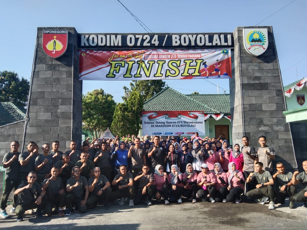 BOYOLALI – Danrem 074/Warastratama Kolonel Inf Ali Akhwan, S.E., didampingi Ketua Persit Kartika Chandra Kirana Koorcab Rem 074 PD IV/Diponegoro Ny. Bening Ali Akhwan beserta staf melaksanakan kunjungan kerja (kunker) ke Kodim 0724/Boyolali. Kegiatan kunker diawali dengan jalan sehat titik start dari alun-alun Kidul Kabupaten Boyolali dan Finish di Makodim 0724/Boyolali, Jumat (8/9/2023).