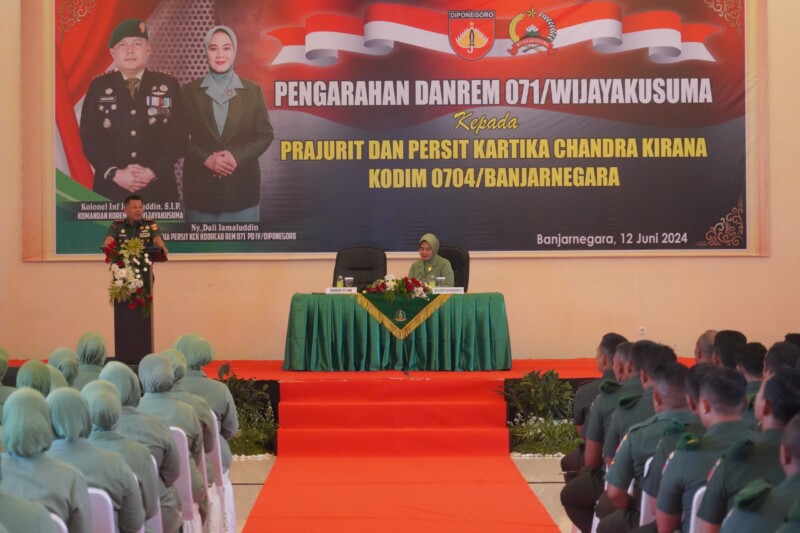 Banjarnegara, – Hal itu ditegaskan Danrem 071/Wijayakusuma Kolonel Inf Jamaluddin, S.I.P., saat berikan jam komandannya pada kunjungan kerjanya di Kodim 0702/Purbalingga dan Kodim 0704/Banjarnegara, Rabu (12/6/2024) bertempat di masing-masing Kodim.