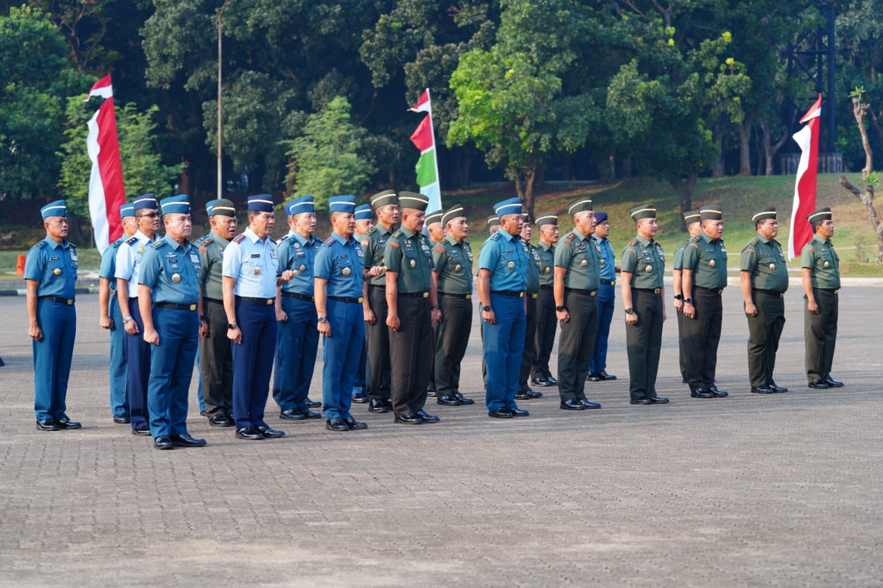 JAKARTA – Panglima TNI Laksamana TNI Yudo Margono, S.E., M.M. memimpin laporan korps kenaikan pangkat 27 Perwira Tinggi (Pati) TNI di Mabes TNI, Cilangkap, Jakarta Timur, Jumat (4/8/2023).