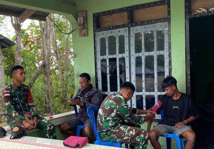 “Banyak warga yang tidak bisa ke puskesmas. Aksesnya jauh, dan tidak semua punya kendaraan. Jadi kami yang datang ke sini,” ujar Serda Hermantoro sembari memeriksa tekanan darah seorang nenek yang duduk di kursi bambu depan rumahnya.