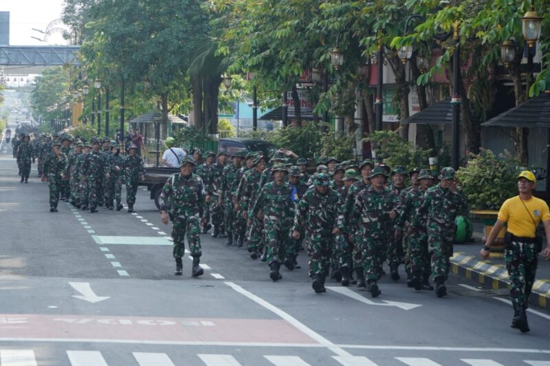 Madiun, – Matahari belum tinggi saat teriakan penuh semangat membelah hening pagi di Kota Madiun. Jalan-jalan yang biasa dilalui warga kini bergema oleh derap langkah ratusan prajurit. Keringat membasahi seragam mereka, napas mereka tersengal—namun tak ada satu pun yang goyah. Tak ada yang menoleh ke belakang. Semua terus melangkah, tegap dan mantap. Karena bagi mereka, setiap langkah adalah wujud dari kehormatan.