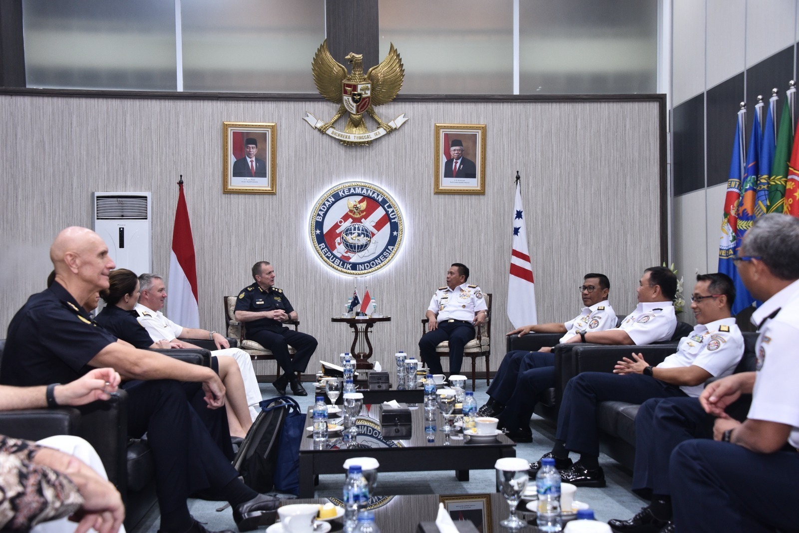 Kepala Bakamla RI Laksdya TNI Dr. Irvansyah, S.H., M.Tr.Opsla., beserta jajaran menyambut hangat kehadiran delegasi ABF yang dipimpin oleh Commissioner ABF Michael Outram APM, yang didampingi oleh Commander Maritime Border Command (MBC) Rear Admiral Justin Jones, CSC RAN, beserta jajaran.