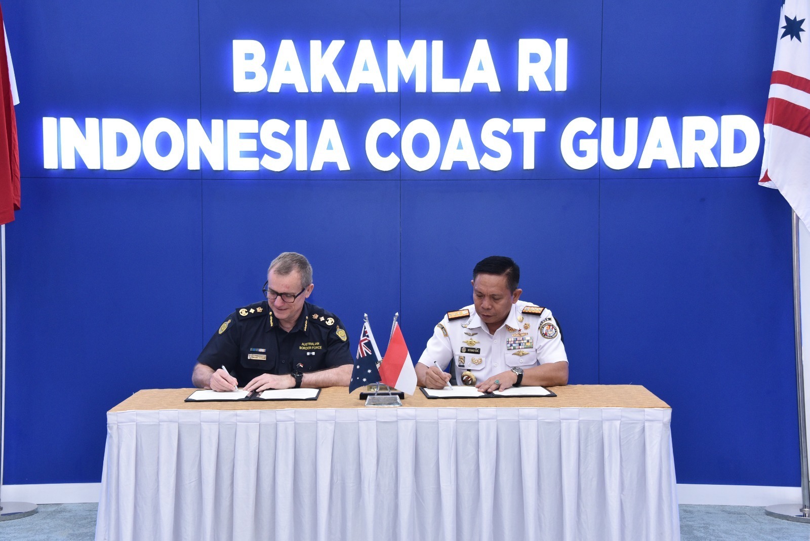 JAKARTA – Bakamla RI bersama dengan Australian Border Force (ABF) adakan The 6th Senior Official Meeting (SOM) Tahun 2023. Pertemuan ini guna meninjau kembali kesepakatan yang telah ditandatangi oleh Bakamla RI dan ABF pada SOM Ke-5 di tahun 2022. Kegiatan berlangsung di Aula Ary Hasibuan, Mabes Bakamla RI, Jakarta Pusat, Selasa (26/9/2023).