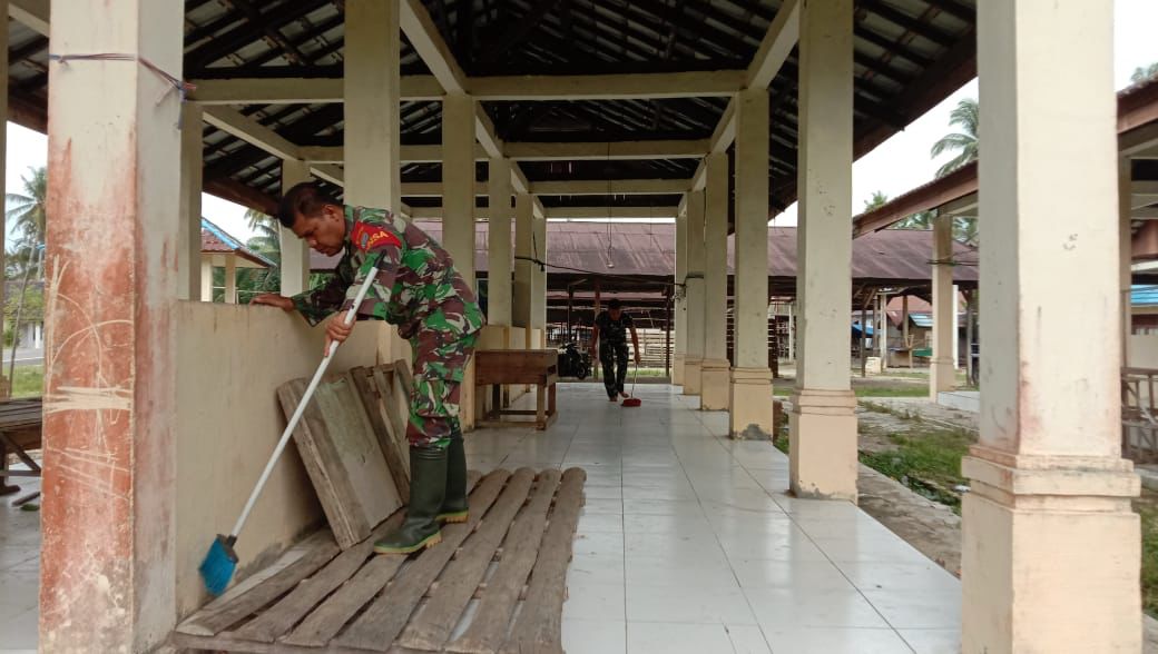 BARITO TIMUR – Sejumlah personel anggota Koramil 1012-02/Patangkep Tutui melaksanakan program Kasad kegiatan karya bhakti dengan sasaran membersihkan pasar, bertempat di Pasar Desa Bentot Kecamatan Patangkep Tutui Kabupaten Barito Timur, Provinsi Kalimantan Tengah, pada hari Rabu (13/12/2023).