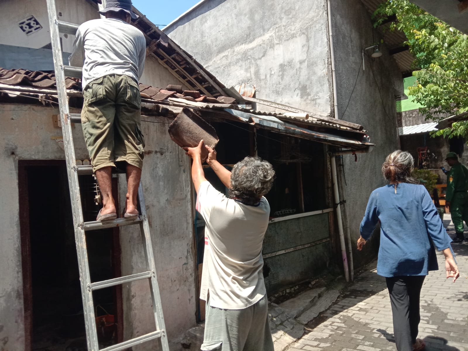SURAKARTA – Bertempat di Kratonan RT 04/RW 01 Kelurahan Serengan Kota Surakarta, Babinsa Kelurahan Kratonan Koramil 03/Serengan Kodim 0735/Surakarta Sertu Suwarno dan Koptu Resbiyanto berjibaku dengan earga melakukan rehab rumah milik Ibu Sumiyem dan Bapak Karsono, warga binaan yang bekerja sebagai buruh.
