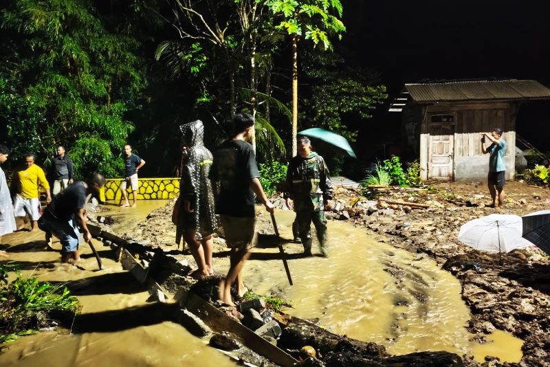 Hujan dengan intensitas tinggi yang berlangsung sejak pukul 19.00 hingga 22.00 WIB menyebabkan material lumpur bercampur bebatuan meluber ke badan jalan dan halaman rumah warga di sekitar lokasi terdampak. Akibatnya, kendaraan tidak dapat melintas karena jalan tertutup lumpur tebal dan batu berukuran sedang hingga besar.