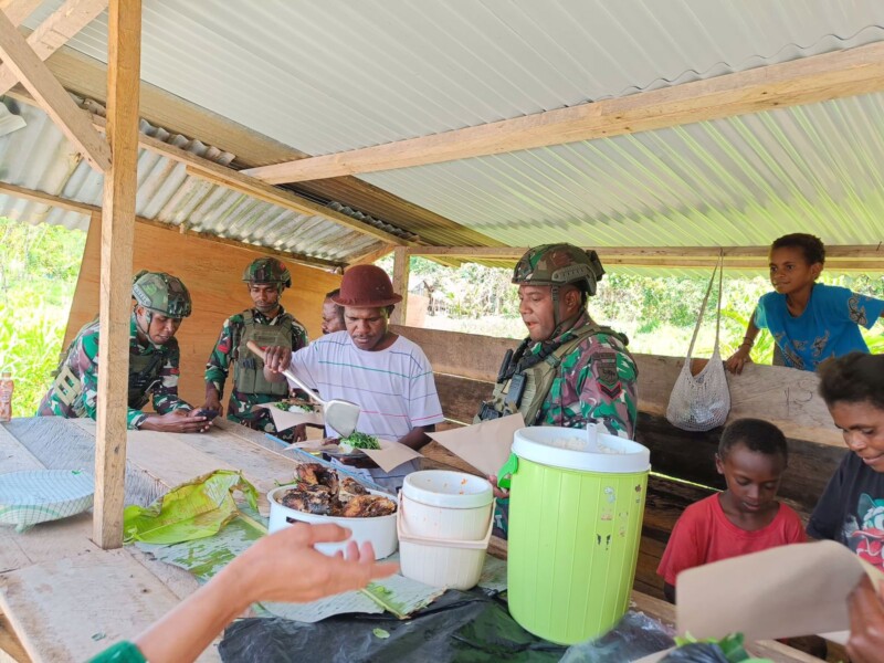Maybrat, – Wujud eratnya kekeluargaan antara TNI dengan masyarakat, Satgas Pamtas RI-PNG Kewilayahan Papua Barat Daya Yonif 762/VYS Pos FEF mengadakan masak dan makan bersama warga di wilayah penugasan di Kampung FEF, Distrik FEF, Kabupaten Tambraw, Papua Barat Daya. Hal tersebut disampaikan Dansatgas Yonif 762/VYS Letkol Inf Dwi Haryanto, S.Hub.Int.,M.H.I., dalam keterangan tertulisnya di Kabupaten Maybrat, Papua Barat Daya, pada Sabtu (23/11/2024).