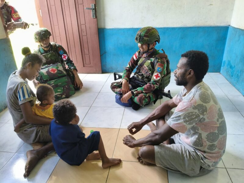 Kaimana, – Satgas Yonif 642/Kps terus melaksanakan kegiatan pelayanan kesehatan, Pos Teluk Etna melaksanakan pelayanan kesehatan ke masyarakat dengan mendatangi rumah-rumah di Kampung Kiruru Distrik Teluk Etna Kabupaten Kaimana, Papua Barat, pada Sabtu (1/3/2025).