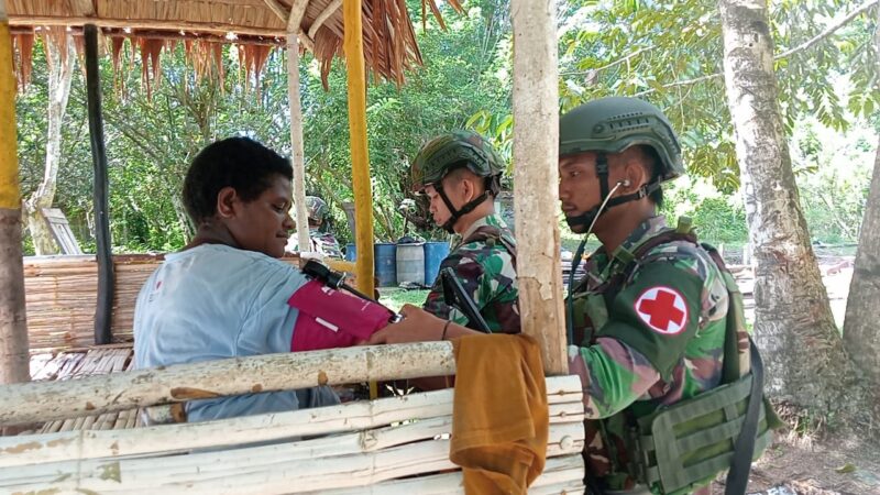 Teluk Bintuni, – Di antara hamparan hijau hutan Papua dan jalan setapak yang lengang, langkah-langkah prajurit Satgas Yonif 642/Kps menyusuri lorong-lorong kecil Kampung Irahima, Distrik Moskona Selatan, Kabupaten Teluk Bintuni. Mereka datang bukan membawa senjata, melainkan membawa harapan—dalam bentuk layanan kesehatan keliling bagi warga yang membutuhkan.