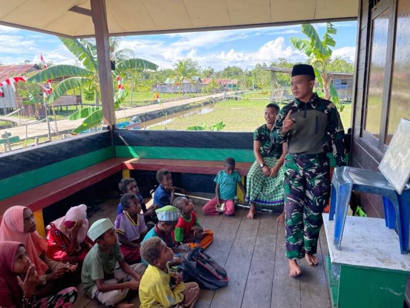 Teluk Bintuni, – Melaksanakan tugas dan tanggungjawab menjaga keamanan di wilayah penugasan serta menyalurkan pengetahuan agama kepada masyarakat dan anak-anak di wilayah penugasan Distrik Kamundan, Kabupaten Teluk Bintuni, Provinsi Papua Barat, pada Selasa (20/8/2024).