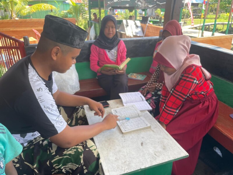 Mengaji Bersama Anak-Anak, Cara Satgas Yonif 642/Kps Bangun Hubungan Baik Dengan Masyarakat Kamundan