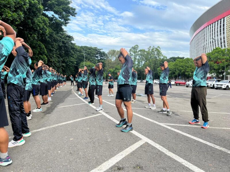 Latihan diawali dengan apel pagi, dilanjutkan senam pemanasan dan peregangan guna meminimalkan risiko cedera. Setelah itu, seluruh peserta melakukan lari mengelilingi Stadion Manahan selama sekitar 60 menit.