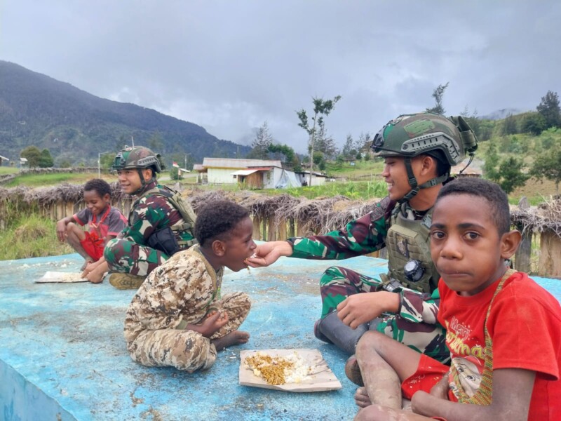“Anak-anak (prajurit TNI, red.) sering membagikan makanan kepada masyarakat. Kami sangat mengucapkan terimakasih kepada personel Pos Gome, karena siap selalu berbagi kepada kami tentunya,” tandasnya.