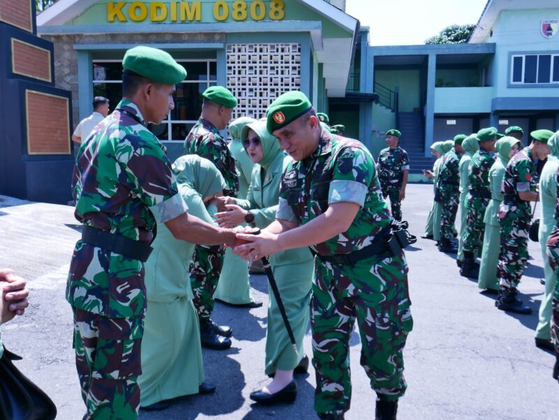 Blitar, – Sebanyak 68 prajurit Kodim 0808/Blitar resmi naik pangkat satu tingkat lebih tinggi. Upacara kenaikan pangkat berlangsung khidmat di halaman Makodim 0808/Blitar, Jl. A. Yani No. 6 Kota Blitar, Rabu (1/10/2025), dipimpin langsung oleh Komandan Kodim 0808/Blitar Letkol Inf Hendra Sukmana, M.Han.
