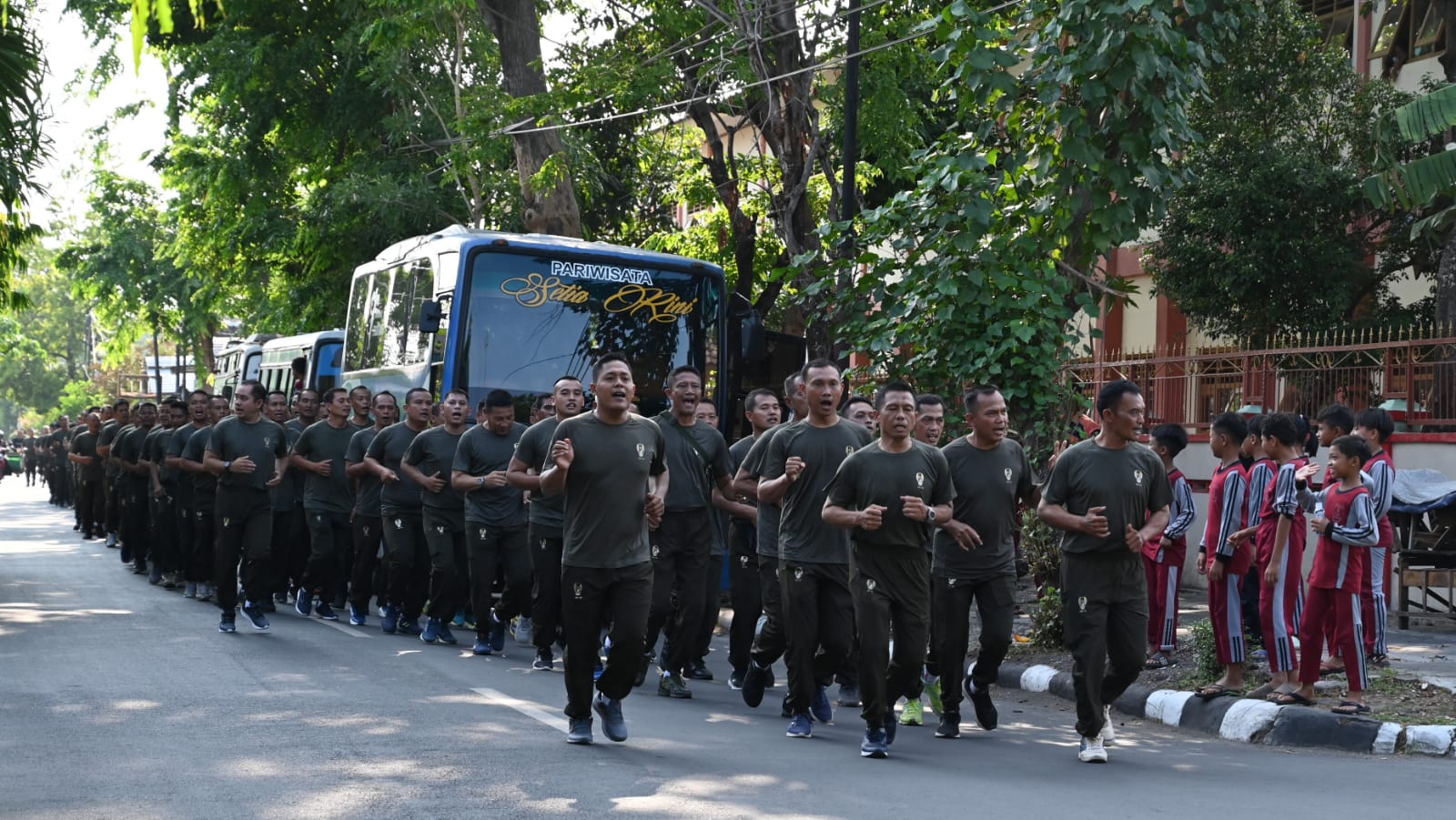 SUKOHARJO – Dandim 0726/Sukoharjo Letkol Czi Slamet Riyadi, S.E., bersama seluruh anggota Kodim 0726/Sukoharjo menjaga kebugaran tubuh dengan melaksanakan olah raga senam dan lari bersama di seputaran kota Sukoharjo. Kegiatan dilanjutkan dengan memberikan Jam Komandan dan Santi Aji kepada anggota bertempat di Makodim 0726/Sukoharjo, sebagai upaya Pembinaan Personel, Selasa (21/11/2023).