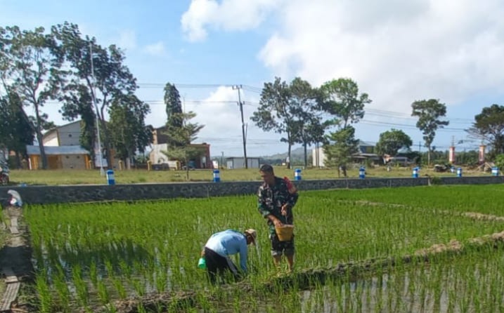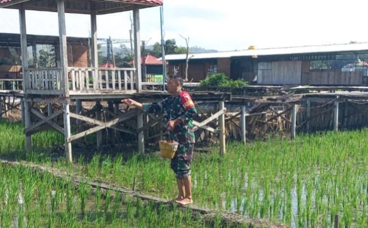 Kegiatan tersebut dilakukan dalam rangka mendukung program pemerintah terkait ketahanan pangan nasional. Dalam pelaksanaannya, Serda Sujarwo secara langsung terlibat dalam proses pemupukan padi bersama para petani setempat. Pendampingan ini bertujuan untuk memastikan pemupukan dilakukan secara tepat dan optimal, sehingga dapat meningkatkan hasil panen serta mendukung kesejahteraan petani.