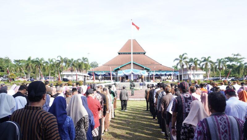 Boyolali, – Semilir angin pagi menyapu pelataran Alun-alun Kidul, Kompleks Perkantoran Boyolali di Desa Kemiri, Kecamatan Mojosongo, pada Minggu (1/6/2025). Langit cerah mengiringi khidmatnya upacara peringatan Hari Lahir Pancasila yang diikuti oleh unsur Forkopimda, ASN, pelajar, hingga masyarakat umum.