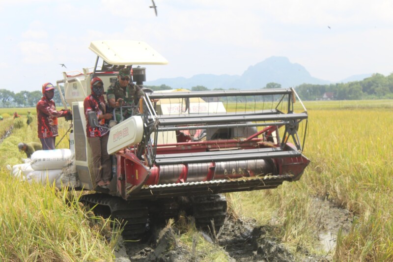 Tidak hanya simbolis, acara berlanjut dengan panen langsung menggunakan mesin combine harvester yang dioperasikan oleh Dandim 0806/Trenggalek. Kehadiran teknologi modern ini menjadi bukti nyata bahwa pertanian Trenggalek siap bertransformasi menuju era modernisasi, mempercepat proses panen, dan meningkatkan efisiensi kerja petani.