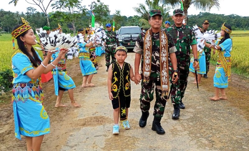 Sesampainya di lokasi panen raya, rombongan Danrem 091/ASN disambut dengan tarian selamat datang sebagai wujud syukur warga masyarakat akan perhatian TNI kepada warga petani yang mana di wilayah Sumber Sari, dulunya susah akan air dan sekarang bisa bercocok tanam padi di karenakan adanya sumur bor yang di gunakan untuk mengairi sawah.