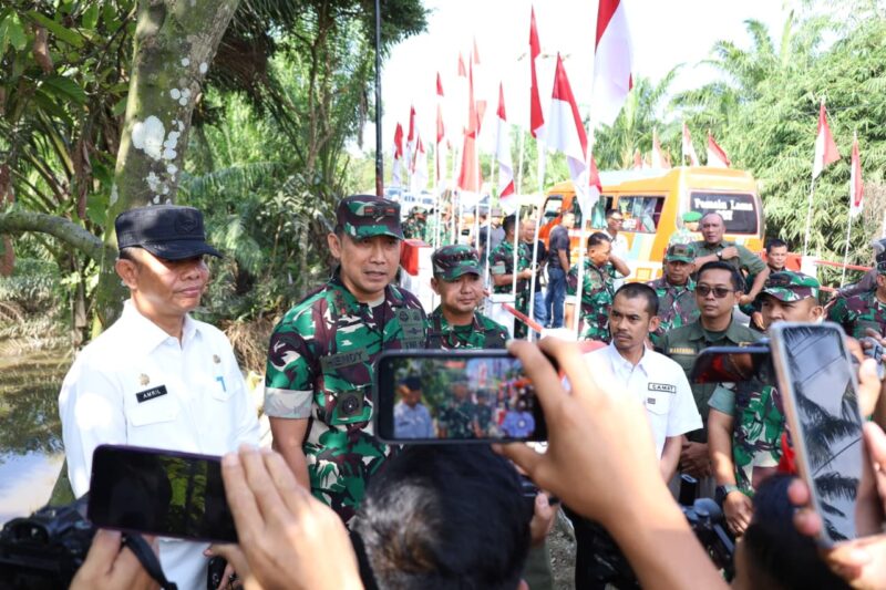 Langkat, Sumatera Utara – Panglima Kodam I/Bukit Barisan Mayjen TNI Hendy Antariksa meninjau Jembatan Aramco yang telah selesai dibangun di Dusun III Simpang Pondok Gudang, Desa Perkebunan Tanjung Beringin, Kecamatan Hinai, Kabupaten Langkat, Sumatera Utara, Rabu (24/12/2025).
