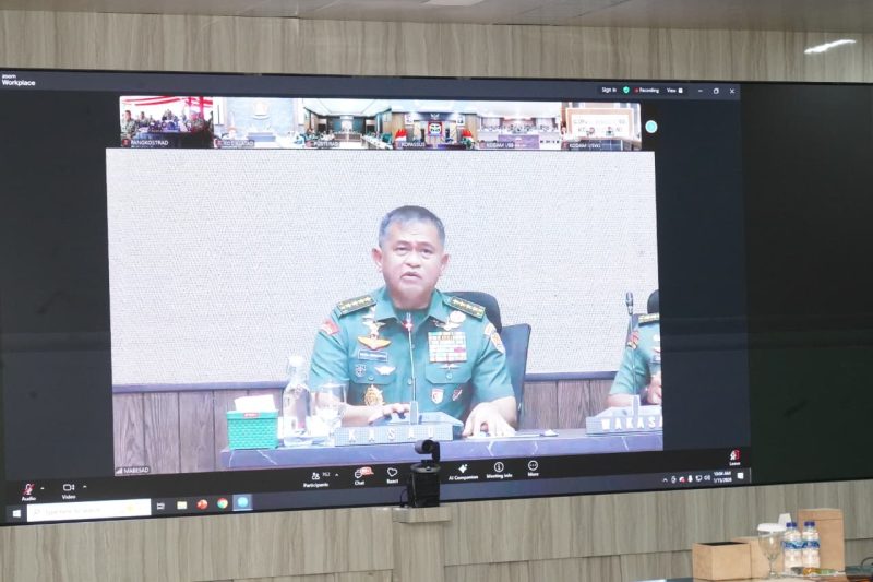 Surabaya, – Pangdam V/Brawijaya, Mayjen TNI Rudy Saladin, M.A., mengikuti kegiatan Zoom Meeting bersama Kepala Staf Angkatan Darat (KASAD) Jenderal TNI Maruli Simanjuntak, M.Sc. Kegiatan ini membahas rencana operasional Satgas Jembatan TNI AD serta percepatan pembangunan jembatan perintis di wilayah Indonesia.