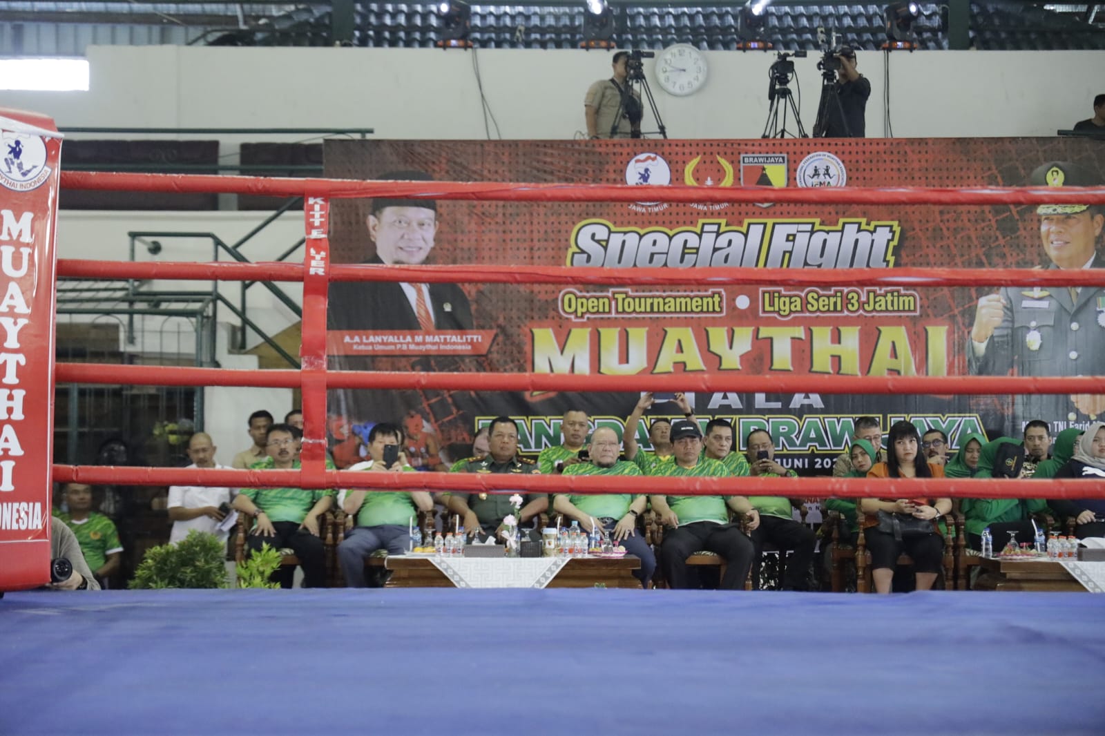 Turut hadir dalam kesempatan tersebut, Ketua DPD RI AA LaNyalla Mahmud Mattalitti yang juga Ketua Umum PB Muaythai Indonesia, Ketua Umum KONI Jatim Drs. H. Mohammad Nabiel dan sejumlah tokoh dan pejabat lainnya.