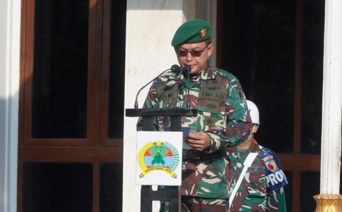 “Dalam kurun waktu belakangan ini, kita perlu menyadari bahwa berbagai peristiwa penting telah memengaruhi kondisi bangsa,” ujar Jenderal Agus dalam amanatnya yang dibacakan Kasrem 081/DSJ Letkol Inf Meina Helmi pada upacara bendera di Halaman Makorem 081/DSJ, Jalan Pahlawan No. 50, Kota Madiun, Senin (20/4/2026).