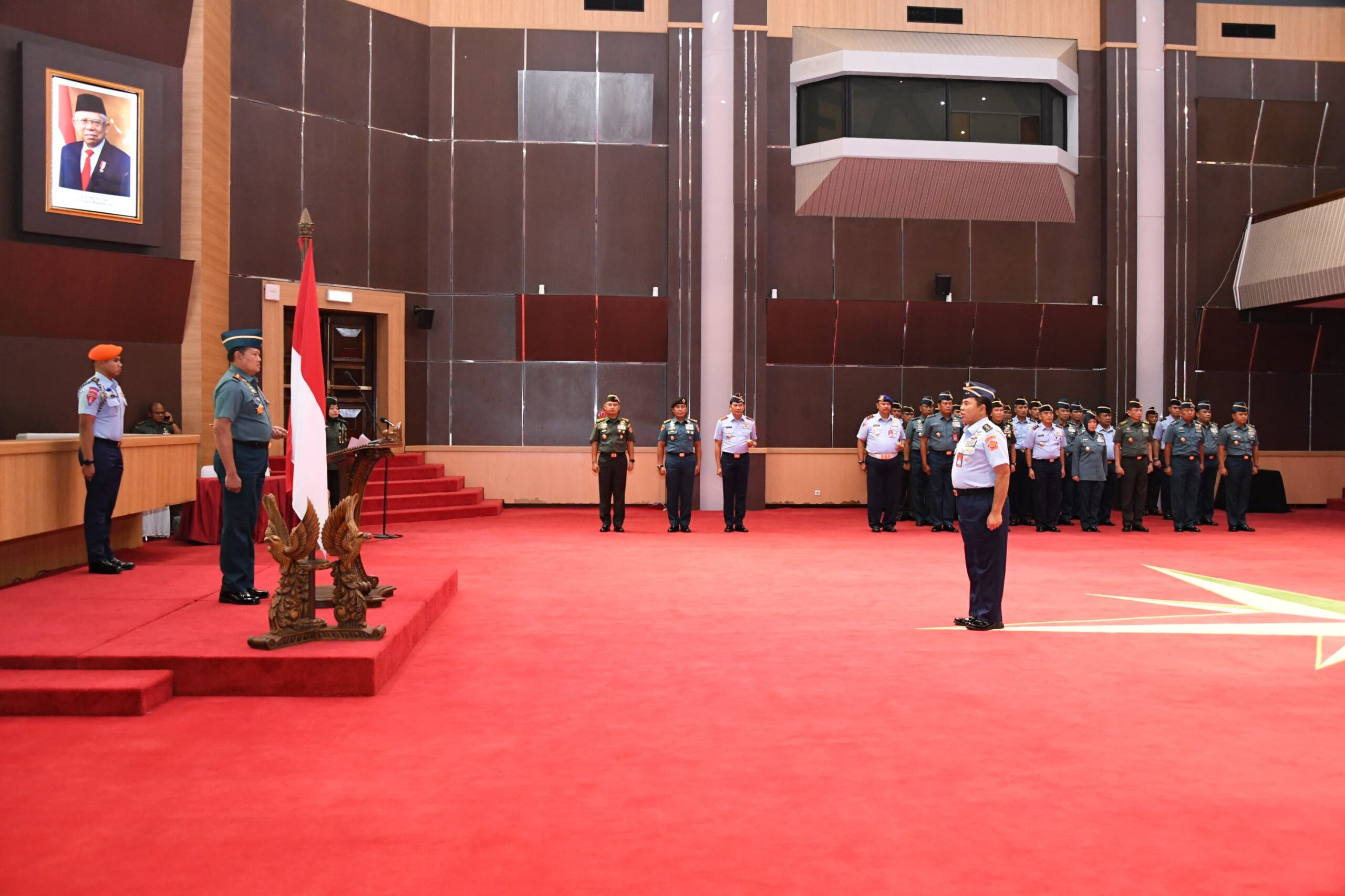 JAKARTA – Panglima TNI Laksamana TNI Yudo Margono, S.E., M.M. memimpin laporan Korps Kenaikan Pangkat 15 Perwira Tinggi (Pati) TNI di Aula Gatot Soebroto Mabes TNI, Cilangkap, Jakarta Timur, pada Senin (13/11/2023).