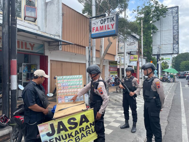 Salah satunya yakni di Jalan Sunan Kudus. Sejumlah anggota Satsamapta Polres Kudus mendatangi para penyedia jasa penukaran uang di jalan Sunan Kudus.