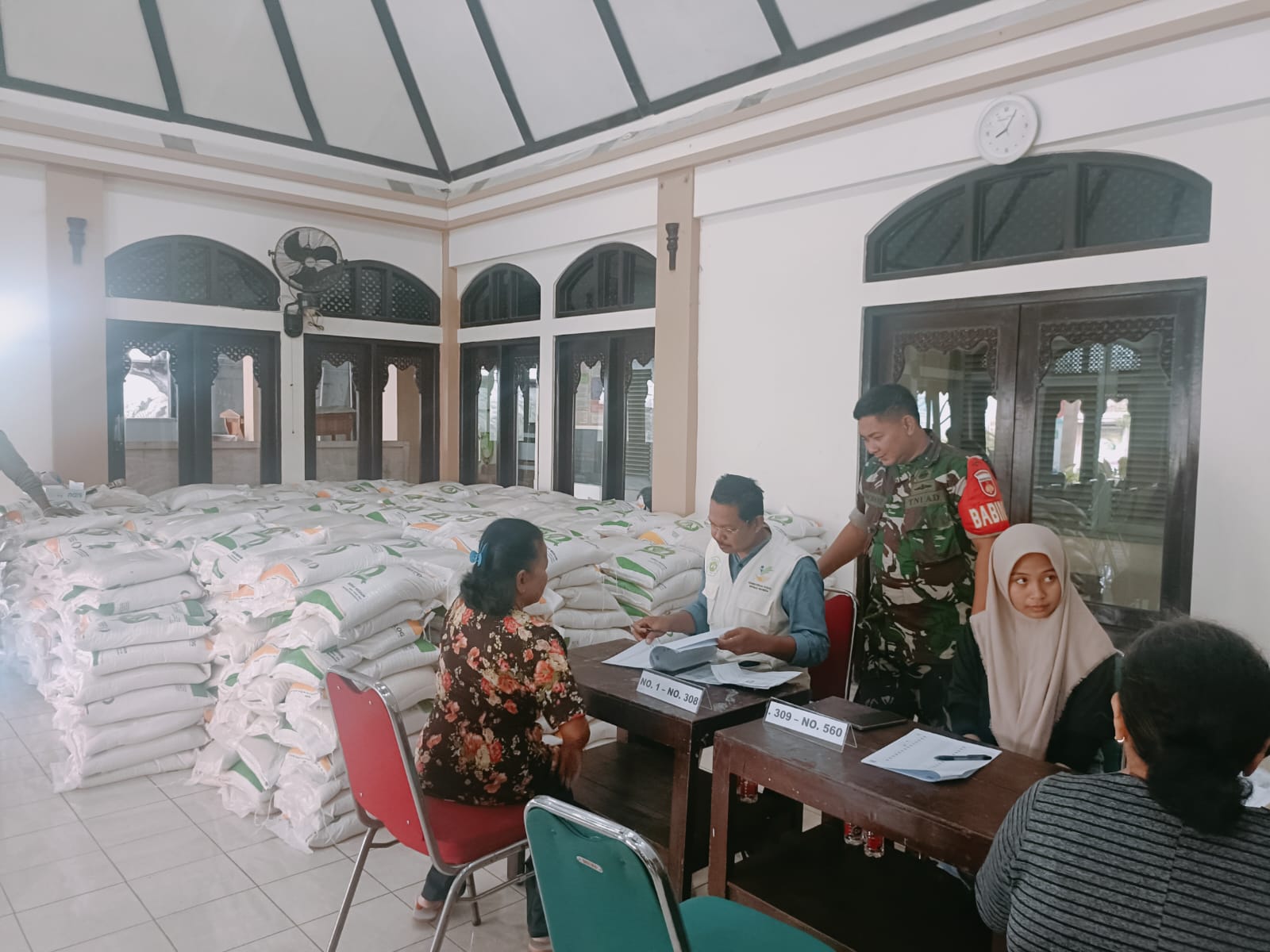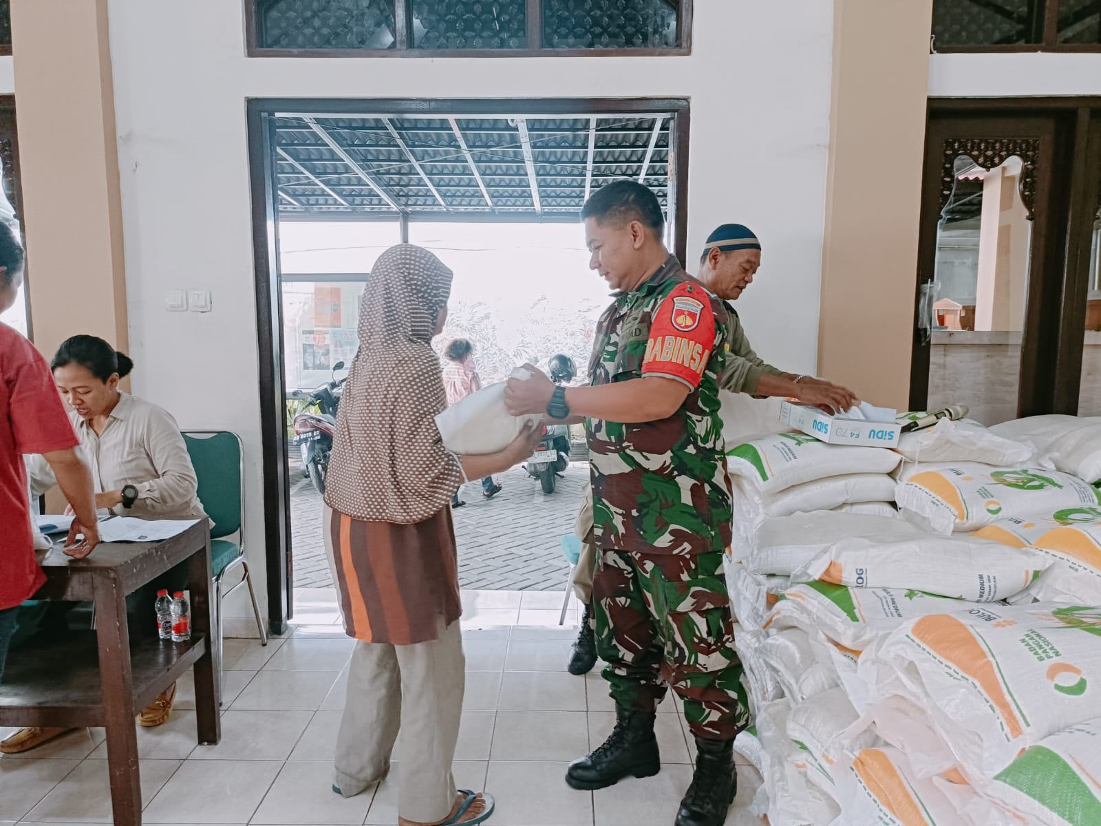 SURAKARTA – Babinsa Kelurahan Danukusuman Koramil 03/Serengan Kodim 0735/Surakarta, pukul 08.30 Wib sampai dengan selesai, Sertu Rochani melaksanakan pengawalan pendistribusian bantuan beras yang diselenggarakan oleh Bulog untuk warga masyarakat bertempat di Jln. Yos Sudarso No. 365 Pendopo Kelurahan Danukusuman, Kecamatan Serengan, Kota Surakarta, pada Sabtu (4/11/2023).