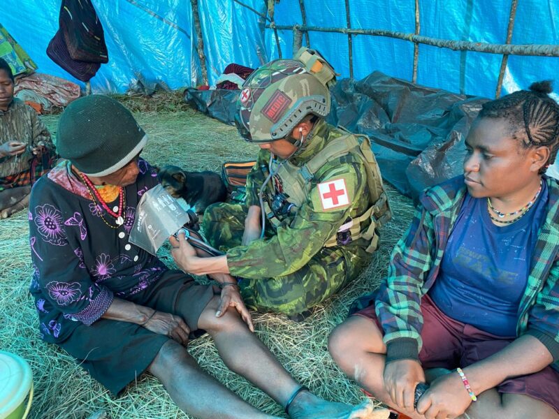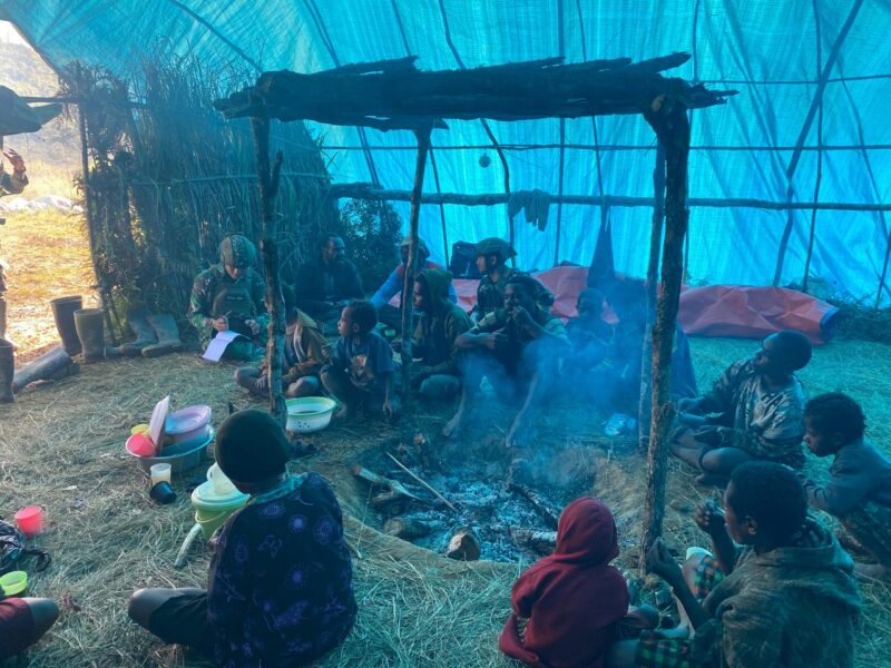 Para prajurit tampak bersimpuh, memberikan pelayanan medis kepada anak-anak, ibu lansia, dan warga yang mulai kelelahan hidup dalam keterbatasan. Di tengah udara dingin pegunungan, satu per satu diperiksa tekanan darahnya, dililitkan perban, dan diberikan pengobatan dasar. Lebih dari sekadar tindakan medis, kehadiran TNI menjadi simbol kehangatan kemanusiaan di tengah ketidakpastian.