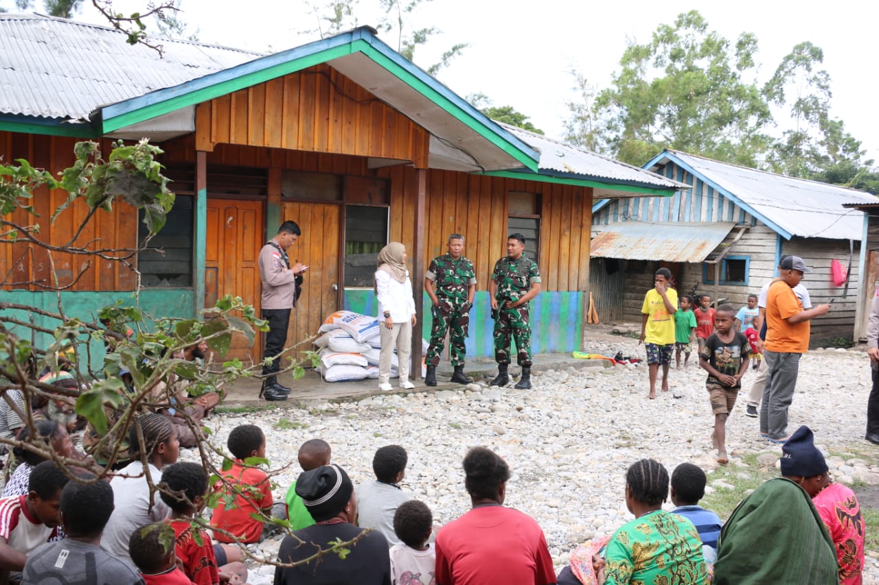 WAMENA – Mayor Inf Romadlon didampingi Pasiintel Kodim 1702/JWY Kapten Inf Sony Teguh Bhactiar turut serta dalam pemberian bantuan beras cadangan pemerintah Kabupaten Nduga, bertempat di Jln. SD Percobaan, Distrik Mam dan Yal, Kabupaten Jayawijaya, Provinsi Papua Pegunungan, Senin (31/7/2023).