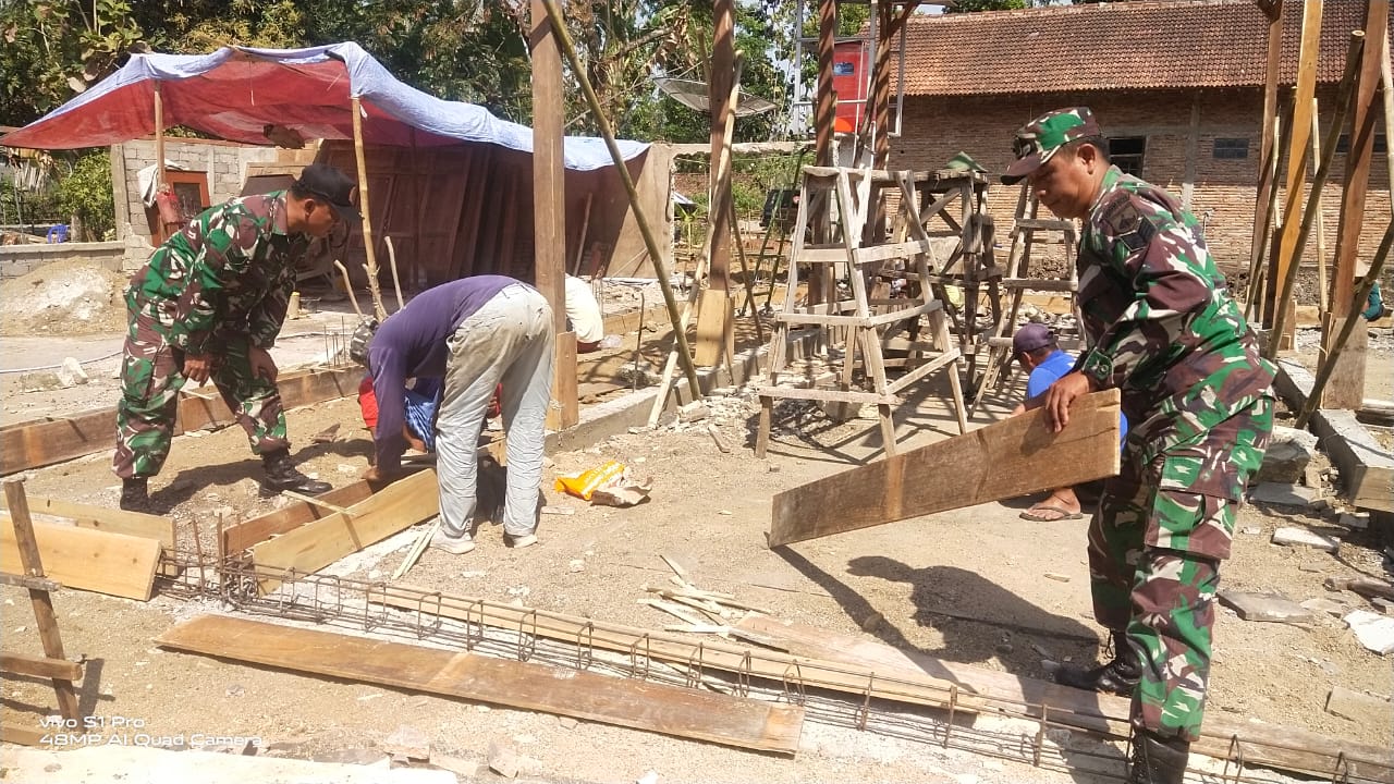 Anggota Koramil 08/Giriwoyo pun turut diturunkan untuk bersama-sama warga dalam kegiatan karya bakti pembangunan rumah, guna membantu meringankan beban.